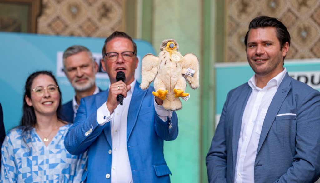 Hendrik Wüst sprach über die Wichtigkeit, zur Wahl zu gehen, damit die extremen Kräfte an den Rändern möglichst klein gehalten werden. Außerdem nahm er die Bundespolitik in die Pflicht: Die Wirtschaft müsse durch die richtigen Rahmenbedingungen gestärkt werden. Zum Dank habe ich dem Ministerpräsidenten gemeinsam mit Romina Plonsker einen Plüschfalken mit Rheintaler überreicht. Dieser soll an die Grundsteinlegung des heutigen UNESCO-Welterbes Schloss Augustusburg und Schloss Falkenlust vor 300 Jahren erinnern.